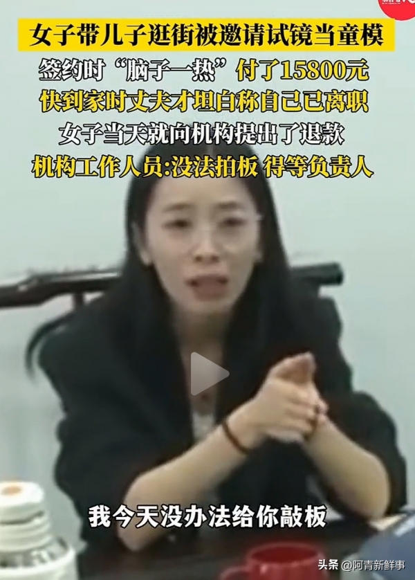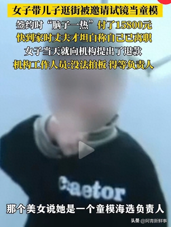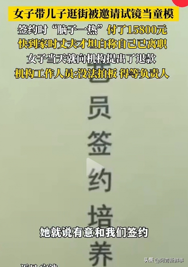 宁波石女士对着付款码毫不犹豫--15800元的童模培养协议,只因为负责人夸孩子"上镜感绝了"。
