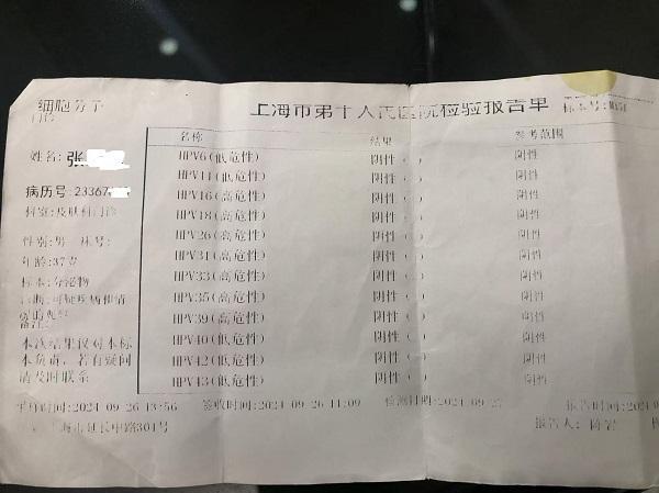 图说:上海第十人民医院的化验单显示相关指标都为阴性