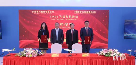 此外,昨天在航展现场,多彩贵州航空有限公司还与中国商用飞机有限责任公司签订了C909飞机订单,进一步扩大多彩贵州航空国产飞机占有量,推动国产飞机市场进一步拓展。