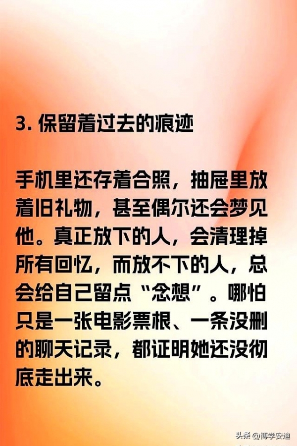 前几天和邻居王姐聊天,她刚和谈了三年的男友分手,嘴上说着"早翻篇了",可我却发现她手机屏保还是两年前两人在海边的合照。