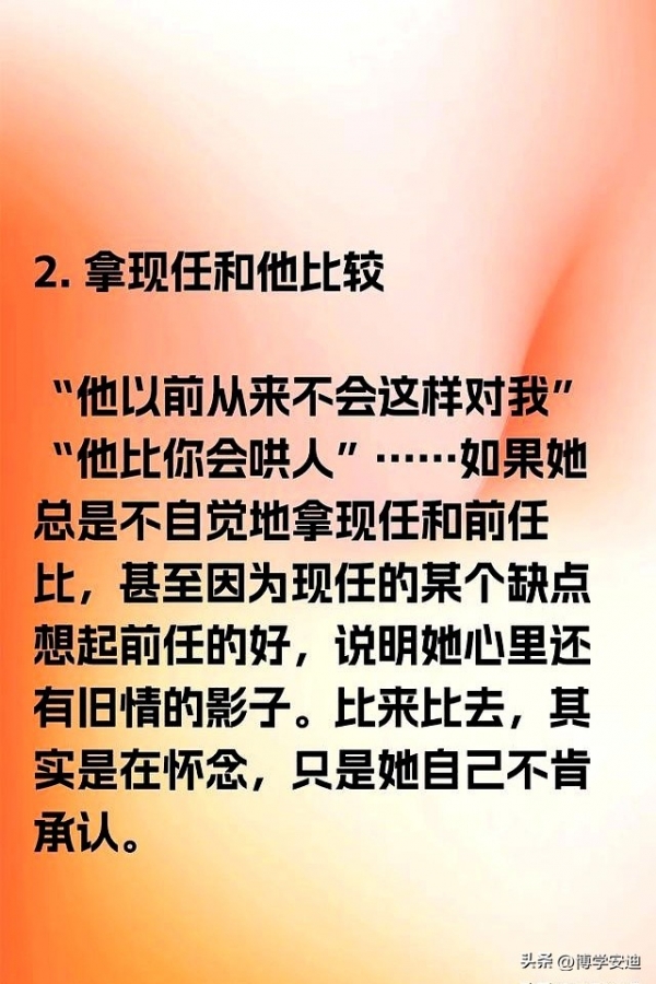 第四个表现,拿新欢和旧人比。