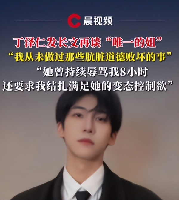 26岁的男星丁泽仁,那个曾通过《偶像练习生》走进大众视野的年轻人,突然发布了一篇数千字的长文,用一种近乎自毁的方式,控诉了自己过去六年间所经历的一场噩梦。