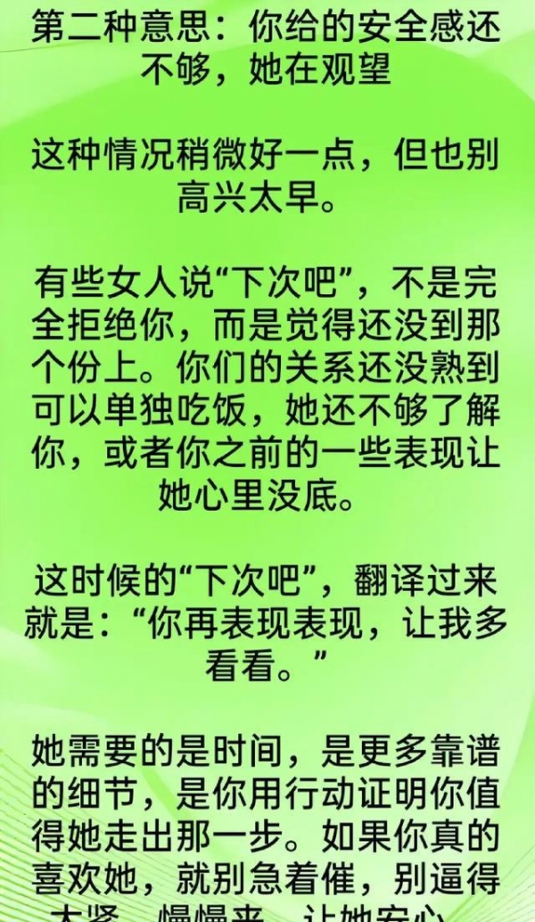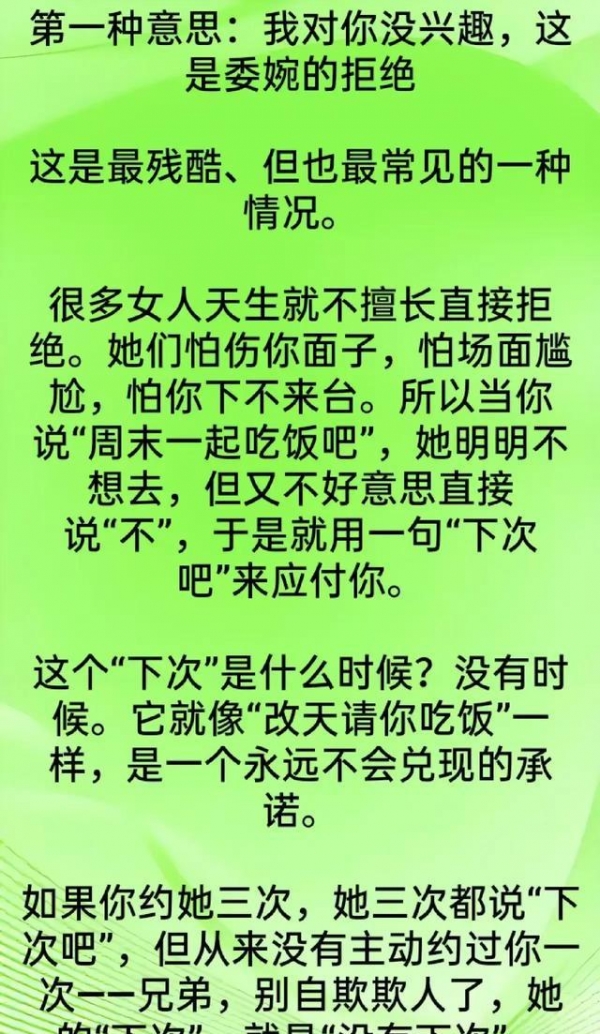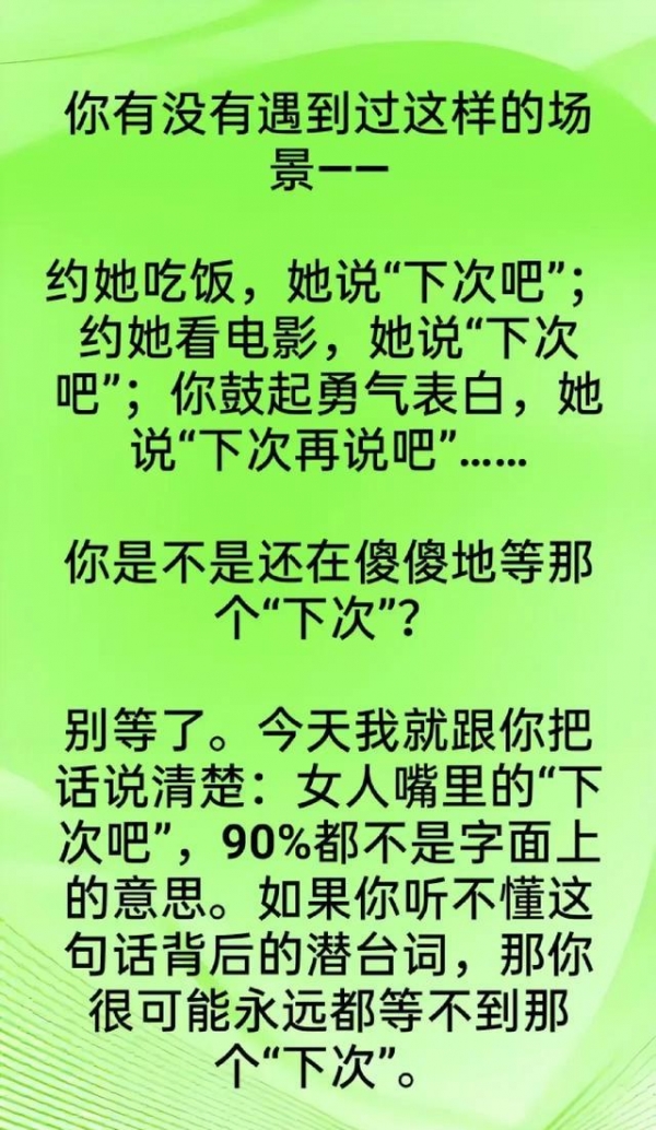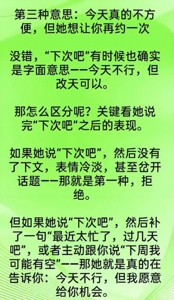 "下次吧"=现在没戏,别等了。