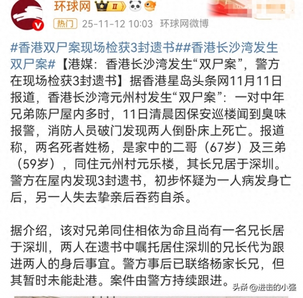 据香港媒体11月11日报道,香港长沙湾元州村发生"双尸案"案,羽毛球好。一对中年兄弟陈尸屋内多时,这真的是太惨了。