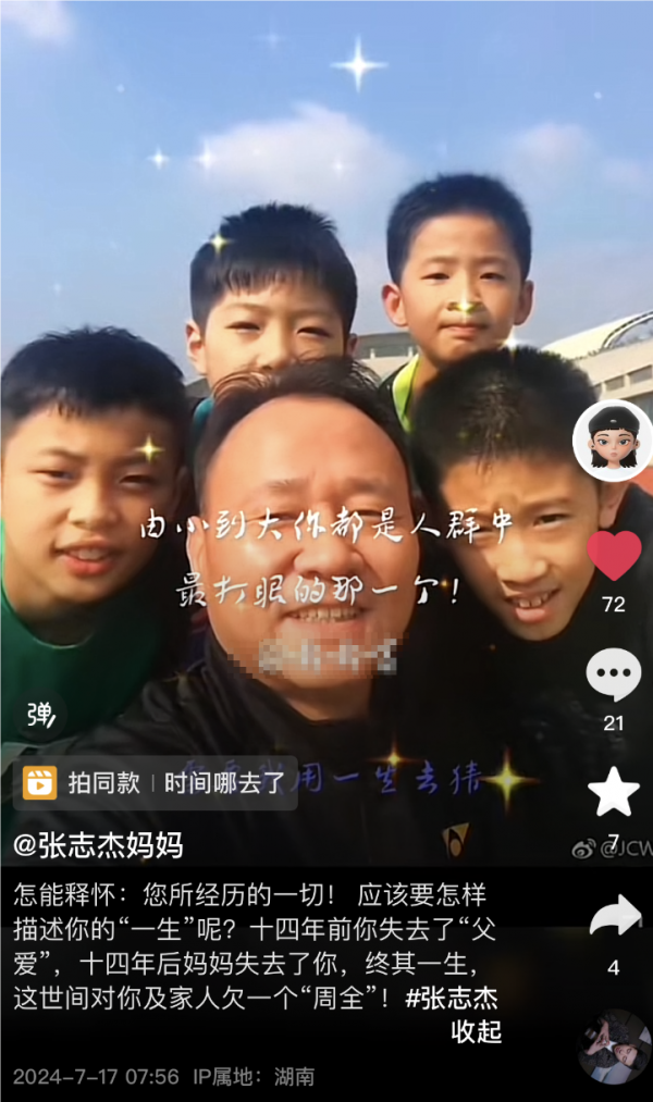 17日,张志杰的妈妈发出张志杰儿时的照片,心疼儿子张志杰这一生的遭遇:该怎么描述你的一生呢?十四年前你失去了"父爱",十四年后妈妈失去了你。终其一生,这世间对你及家人欠一个"周全"。