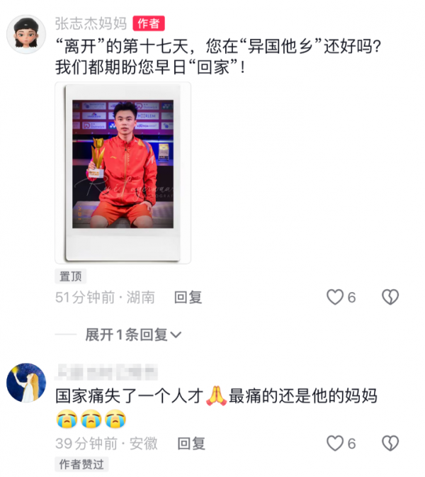 张志杰的妈妈既无奈又悲痛,她直言张志杰从小就是人群中最闪耀的那一位。如果他仍在,一定可以创造羽坛的奇迹,他在球场上的表现,也一定可以被羽毛球爱好者剪辑成超燃的画面。