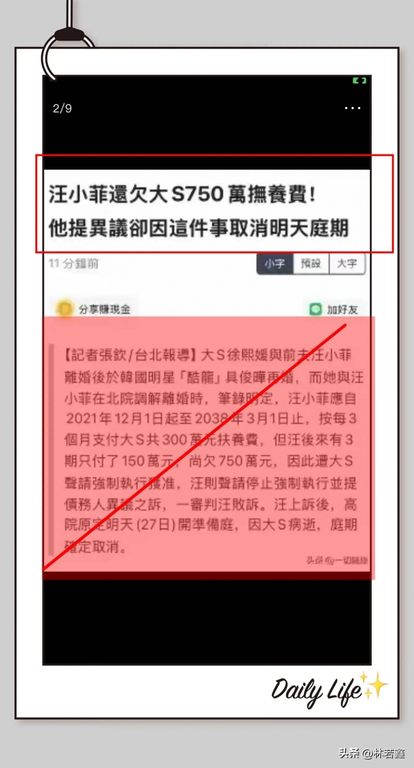 据悉原本汪小菲今天跟大S在台本开庭,因为大S突然去世,今天的开庭取消了!