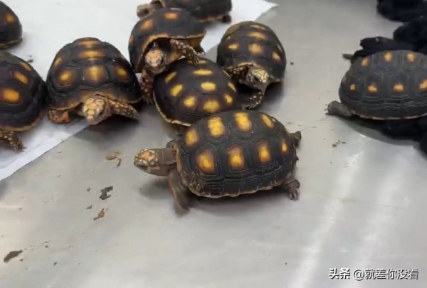 经深圳市野生动物保护专家鉴定,这批被"五花大绑"的陆龟来头不小。既有南美红腿陆龟,也有黄腿陆龟,都是被《濒危野生动植物种国际贸易公约》明令保护的物种。这些小家伙成年后甲壳可达40厘米,寿命长达50年,在国际宠物黑市能卖到上万元。