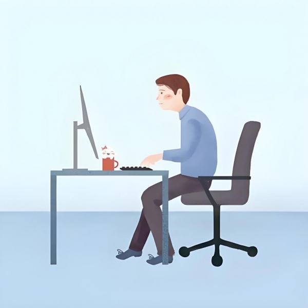 坐着工作时,每隔一个小时站起来活动几分钟,把肩膀向后绕几圈,主动扩展胸腔。