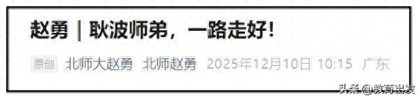 北京师范大学赵勇教授发布悼念内容,其中提到,中国传媒大学人文学院教授、博士生导师耿波因病于近日去世,年仅49岁。