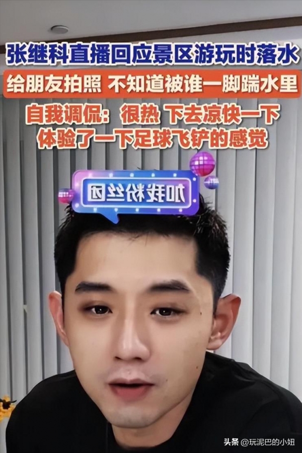 事后他在直播中幽默回应,称"被人一脚踹下水,正好凉快凉快"。