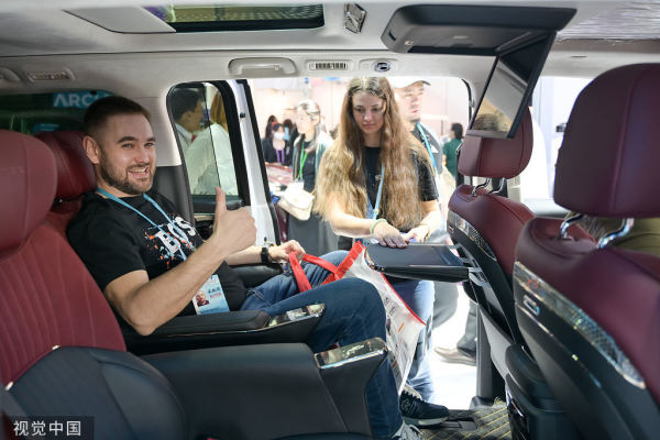 4月15日,第135届广交会上,海外采购商体验新能源汽车。视觉中国