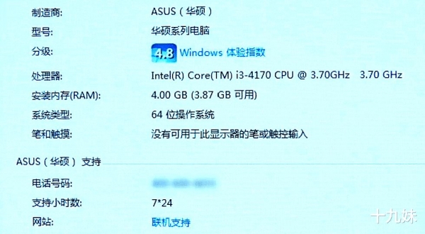 在这台电脑的配置信息页面,能看到CPU的型号为Intel Core i3-4170,内存为4G。i3-4170是英特尔公司2015年发布的芯片,确实是将近10年的"古董"配置了。