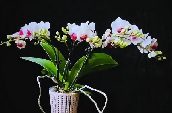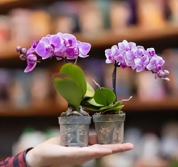 展厅里人头攒动,百花争艳。而在一个不起眼的角落,放着一盆特殊的蝴蝶兰。它看上去并不张扬,却吸引了一位女顾客的注意。