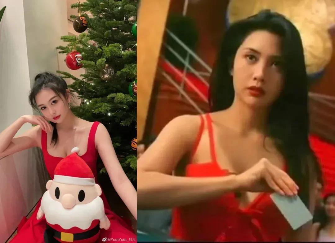 妈妈当年是有名的"纯欲港风大美人",女儿的颜值自然也不会差到哪里去,换上经典的港风红衣,更加有当年邱淑贞的影子。