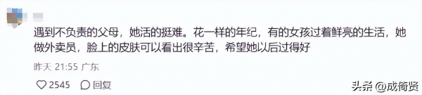 好在欣月已经离开了那个环境,才20岁的她就肩负重担,她常年跑外卖,不论风吹雨打,她从不停歇,因为她清楚的知道,她得活下去,别无选择。
