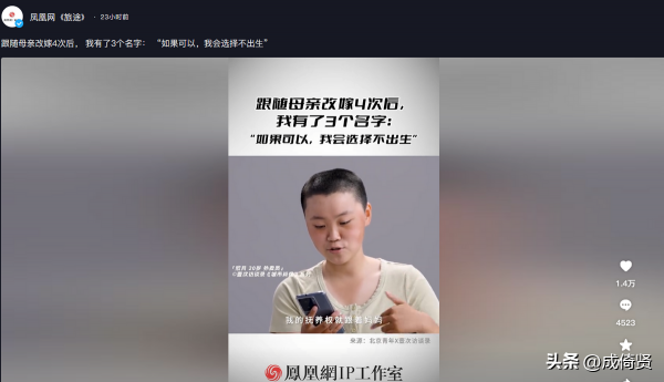 她表示如果再给她一次机会,假如是富二代,也会选择不出生,会将富二代的这个名额让给别人!