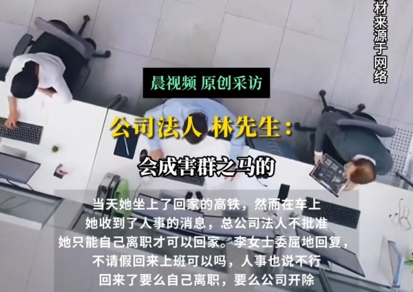 部门经理一句"你先走吧,没问题",到了法人那里就能完全变卦,李女士说得到消息那一刻,自己坐在高铁车厢里,根本不知道接下来该怎么办了。