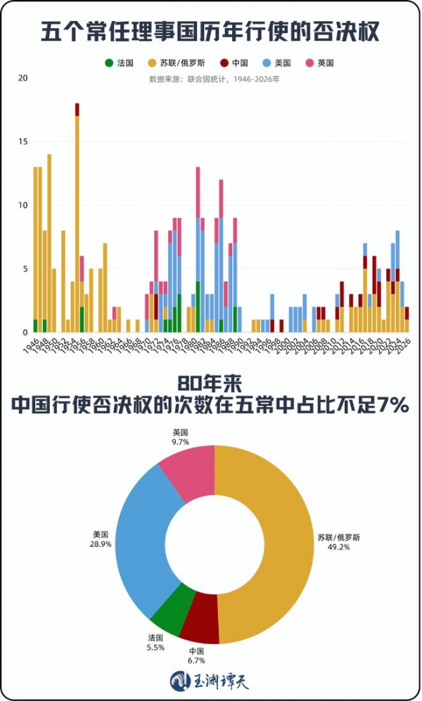 根据联合国统计,历史上329次否决中,中国只占22次,占比不足7%