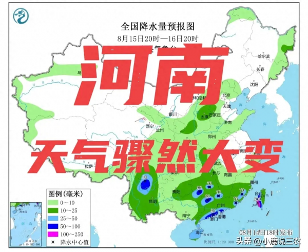 河南大范围降雨又要来!8月15~16日大雨暴雨分布如下,快来看看