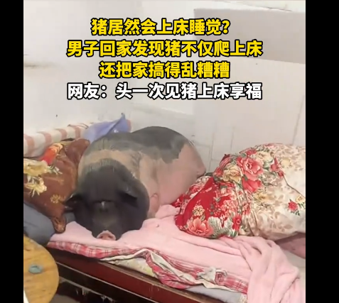 12月15日浙江(发布),猪居然会上床睡觉?据视频显示,男子回家发现自己养的两头猪不仅爬上床还把家搞得乱糟糟。
