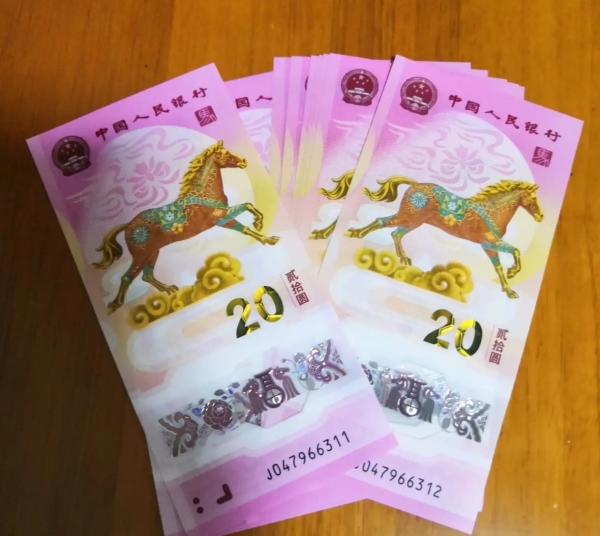 作为第二轮生肖纪念钞的收官之作,马钞自带"稀缺buff"。其面额20元、材质为环保塑料钞,发行量1亿张,与龙钞、蛇钞持平,可与前两款组成"龙马精神"系列套装,成为藏家补齐系列的刚需选择。更叠加"马到成功"的吉祥寓意,契合春节赠礼场景,企业采购与个人收藏需求同步激增,为溢价奠定基础。