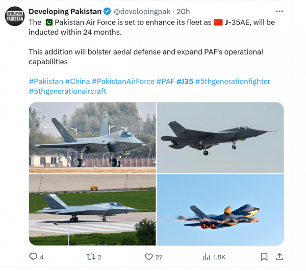 只有歼35隐身战斗机,还尚未服役就已被巴基斯坦空军看中。实际上,在歼35A亮相珠海之前,巴基斯坦空军就多次宣布要从中国采购该型战斗机,甚至还成立了测试中队,派出飞行员前往中国进行培训。再到11月8日,据巴基斯坦社交媒体Developing Pakistan报道称,巴基斯坦空军的首个歼35AE战斗机中队将在24个月内服役,也就是说在未来两年时间里,巴基斯坦空军将要装备歼35隐身战斗机,这对于中国和巴基斯坦来说都有着深远的历史意义。