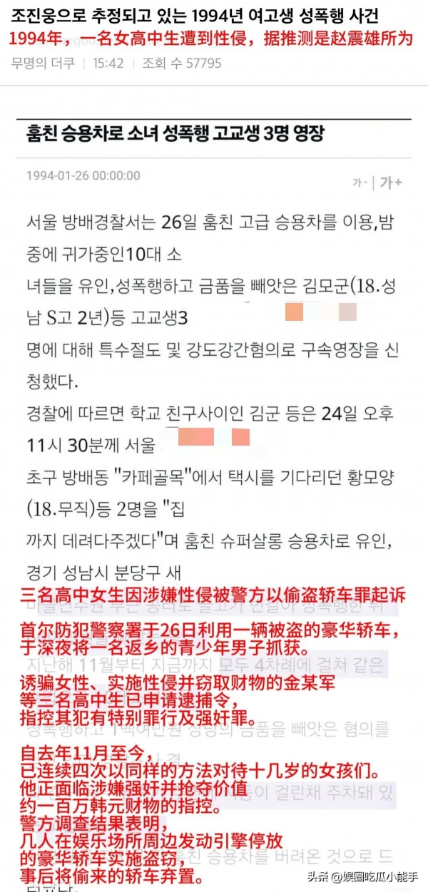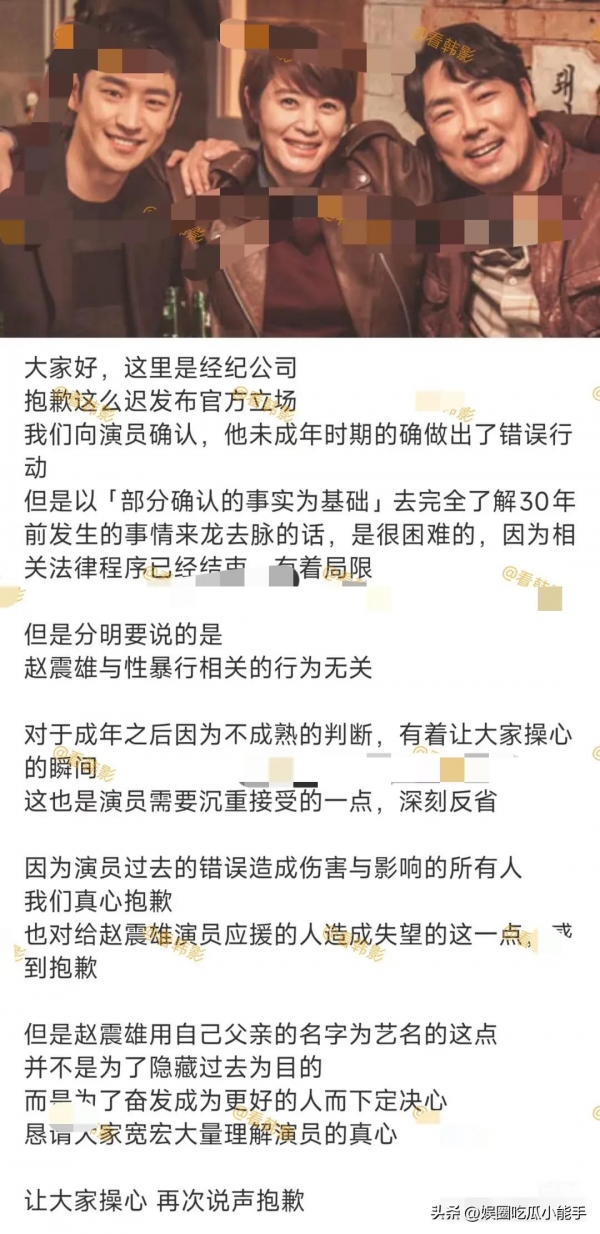 剧里演警察,剧外竟然无恶不作,多么讽刺。在确凿的证据质控下,赵震雄的经纪公司也出来回应,承认赵震雄年少的时候确实犯了很多错,但否认性暴力。