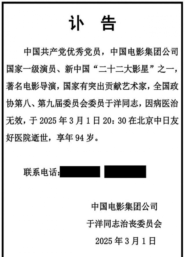 2025年3月1日,一则消息让无数影迷心碎--新中国第一代电影巨星于洋与世长辞,享年95岁。