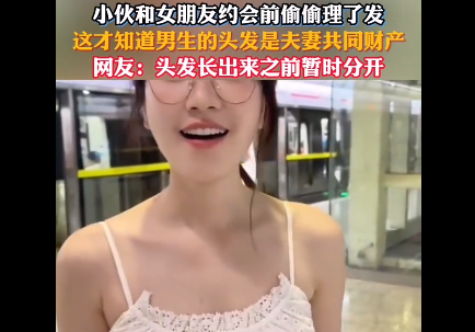 视频讲述了一个有趣场景:小伙在和女朋友约会前,悄悄去理了发。没想到,这一行为却引出"男生头发是夫妻共同财产"的调侃。网友甚至打趣道:"头发长出来之前暂时分开"。这件小事以诙谐的方式,展现了情侣间别样的相处乐趣与大众对此的欢乐解读。