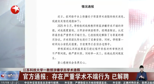 11月17日,据现代快报报道,江苏科技大学材料科学与工程学院教授、博士生导师郭某因涉嫌学术造假、侵占国家科研经费等问题,被警方带走调查。