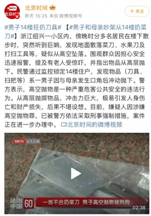 一、监控揪出14楼住户:和妈妈吵完架,他把刀从窗户扔了