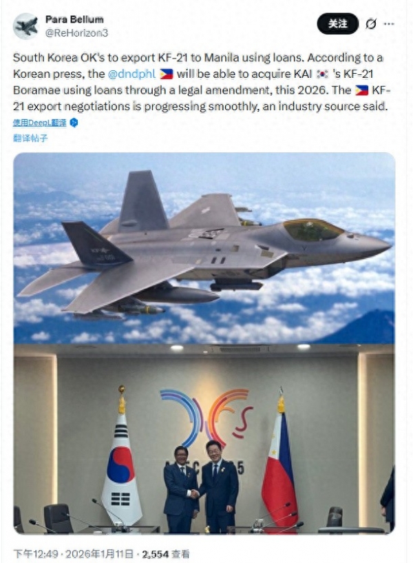 据韩国媒体报道,韩国方面已经正式同意,菲律宾可以通过贷款的方式,从韩国采购20架KF-21"准五代机"。与此同时,菲律宾还敲定了第二批12架FA-50教练机的采购计划,这款教练机其实具备轻型战斗机的作战能力,也能直接用于实战。