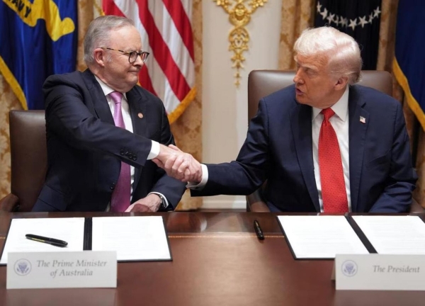 据多家外媒10月21日报道,当地时间周一,美国总统特朗普在白宫接见了到访的澳大利亚总理阿尔巴尼斯,期间双方讨论了一系列贸易和军事合作问题。据悉,此次美澳会谈的最大成果是达成一份价值85亿美元的稀土供应协议。