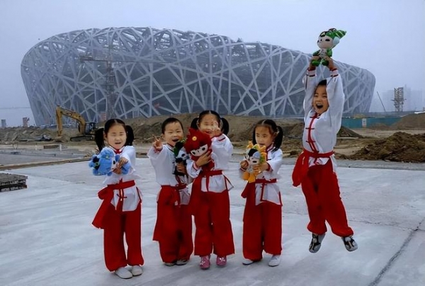 五个孩子天真烂漫的笑容,完美诠释了奥运会"同一个世界,同一个梦想"的主题。