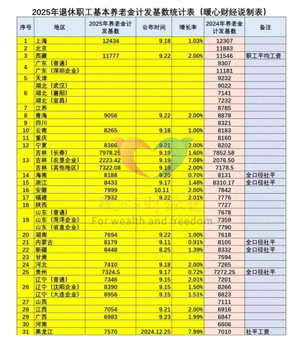 原因在于,2025年退休人员要使用2025年的上年度社会平均工资或者养老金计发基数计算养老金。但目前来看,全国各地陆续在9~10月份公布的新年度养老金计发基数,所以退休养老金将会在9~10月份按照新基数进行重算并补发差额。