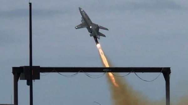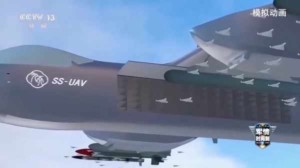 ("九天"无人机释放蜂群无人机模拟画面)