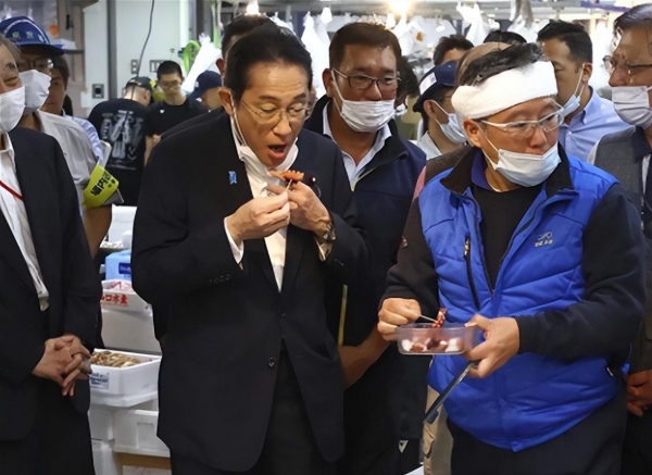 可对于日本民众和国际社会的反对,日本统统视而不见,依旧将核污水排入太平洋,甚至为了证明他们的水产品没问题,岸田文雄还亲自试吃,但这根本就是无用之功。