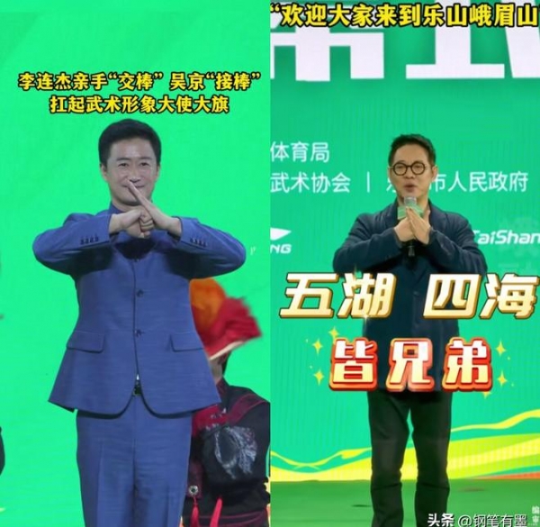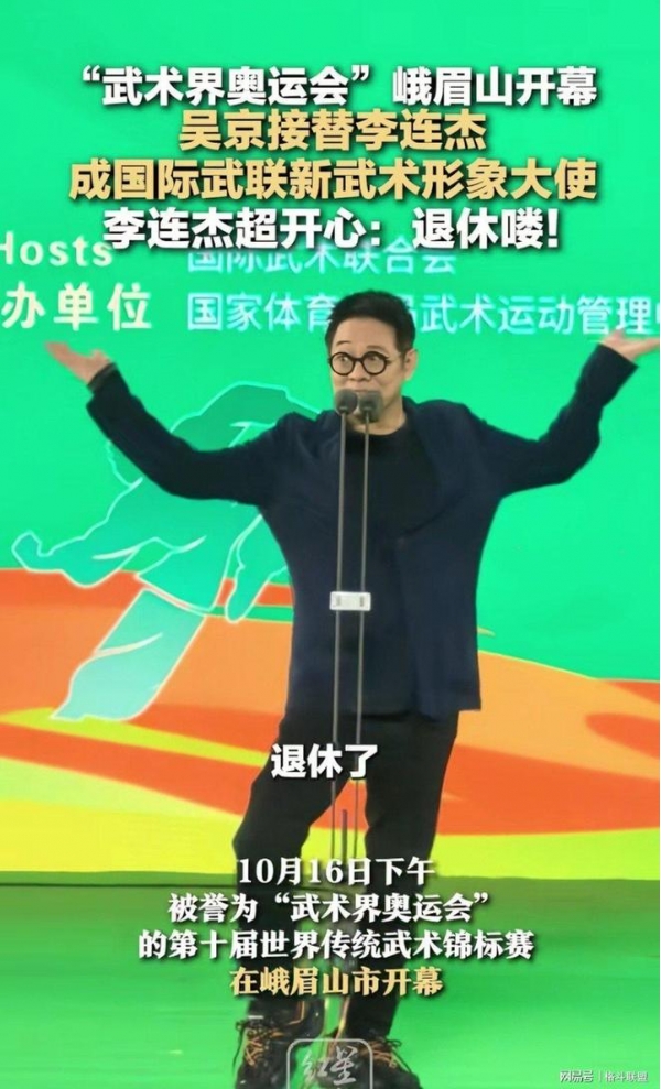 李连杰担任国际武联形象大使18年,今年正式卸任,由同门师弟吴京接棒。