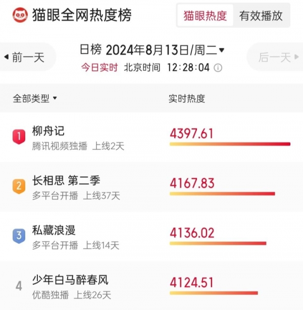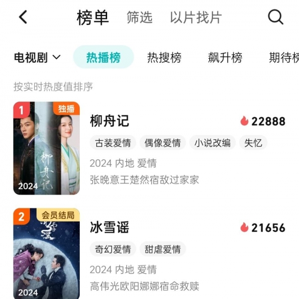 不仅拿下teng讯视频平台热播榜第一,还拿下全网热度第一,并喜提"《柳舟记》 好看"热搜词条。