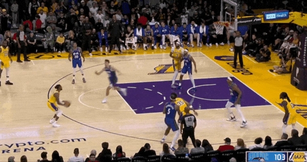 比赛开场,湖人率先发力,詹姆斯和东契奇开场手感火热,连续取分帮助球队建立领先优势,首节结束湖人33-25领先。次节回来,卡特在湖人篮下禁区连续拿分,不过艾顿同样是予取予求,两队陷入拉锯战,半场结束湖人56-53保持领先。易边再战,双方依旧是交替取分,里夫斯在上半场5中0后找到手感,连续投进,三节结束80-79依旧领先。末节回来,魔术很快完成反超,随后双方再次陷入拉锯战,比赛悬念僵持到最后一刻,最后30秒贝恩关键三分完成反超1分,随后詹姆斯扣篮反超回来,不过随后卡特再补篮准绝杀,詹姆斯三分不中,魔术110-109险胜湖人。