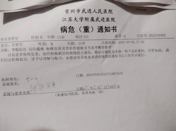 经过紧急救援,肖妍被及时送往医院进行全面检查,然而医生的诊断却给家人带来了沉重的打击,原本健康活泼的少女如今竟然因此意外遭遇了高位截瘫,四肢完全丧失了活动能力。面对这突如其来的变故,肖妍的家人陷入了极大的悲痛之中,而肖妍本人也需要接受长期的康复治疗,未来的生活将充满无法预料的挑战。