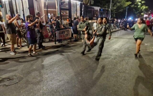 当地时间2日晚,以色列示威游行仍在继续 《以色列时报》