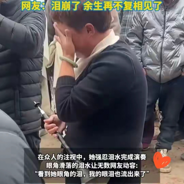 视频里,女子身处人群中,强忍着满心悲痛吹奏,眼泪不受控制地顺着眼角滑落,她没有抬手擦拭,任凭泪水流淌,颤抖的身躯里,是对好友最深切的哀思。一曲吹罢,积攒的情绪再也难以抑制,眼泪夺眶而出。她事后平淡回应,满足好友的心愿,送她最后一程,自己也了却了一桩心愿,简单的话语背后,是半个世纪的深厚情谊。