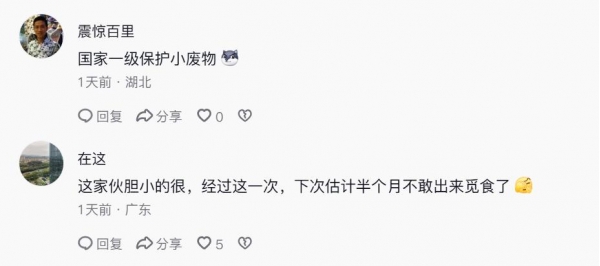 有网友回复说:"这家伙胆小的很,经过这一次,下次估计半个月不敢出来觅食了"。哈哈,这位网友说到扬子鳄的心坎里了!估计扬子鳄说:"这个老六,竟然把我钓上来了"!