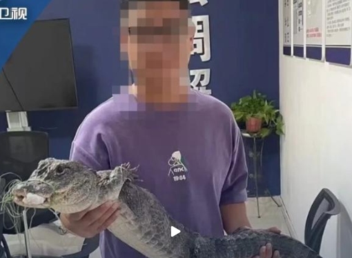 安徽广德男子在夜钓的时候,意外钓起一条鳄鱼,为防止鳄鱼受伤,他特地将其带至派出所求助,看着送来的鳄鱼,民警大为吃惊,第一时间联系了野生动物救助站。