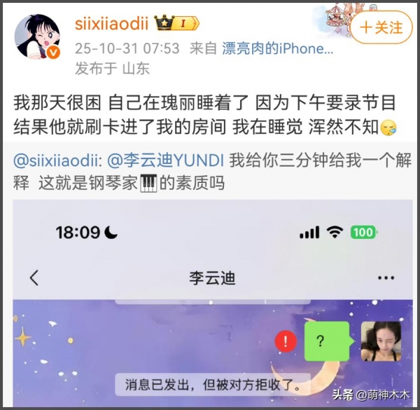 不过司晓迪的发言也被网友抓到漏洞,有网友质疑她不是睡着了吗,怎么知道是李云迪进入她房间,她又说李云迪敲门了,爆料前后矛盾,也让网友怀疑事件真实性。