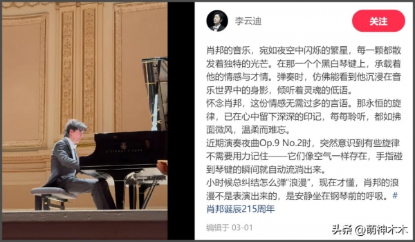 但目前李云迪方面还没有任何回应,据悉李云迪最近事业有了新起色,之前在澳门还开了演奏会。