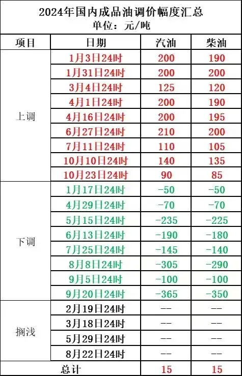 进入2024年下半年以来,油价呈现大幅下跌趋势,单次下调超过300元/吨的就有两次,最大的一次达到了365元/吨,也是今年以来最大的单次调整。在下半年4次下跌调整当中,汽油的价格累计下调超过900元/吨,达到了915元/吨,柴油价格累计下调达到了880元/吨。