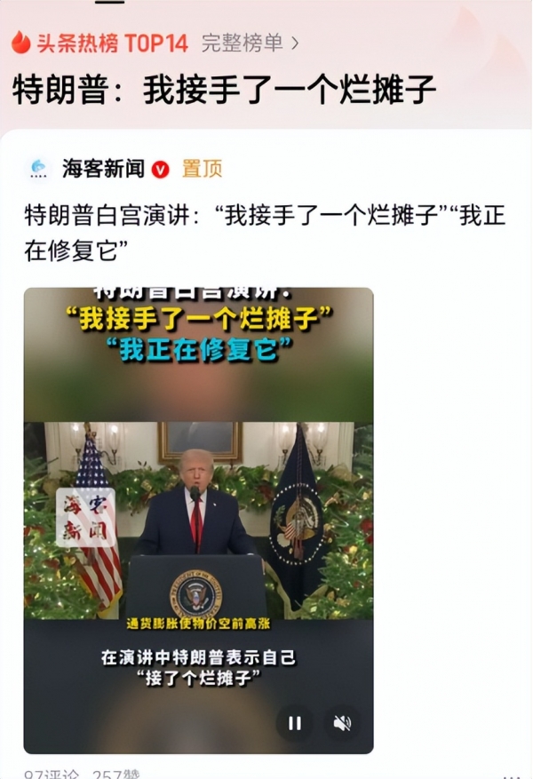 而特朗普重返白宫后,也没有打破这一规律。美国乃至世界民众早已习惯了特朗普不加预告的社交媒体小作文、以及各类新闻发布会上的激情对线。